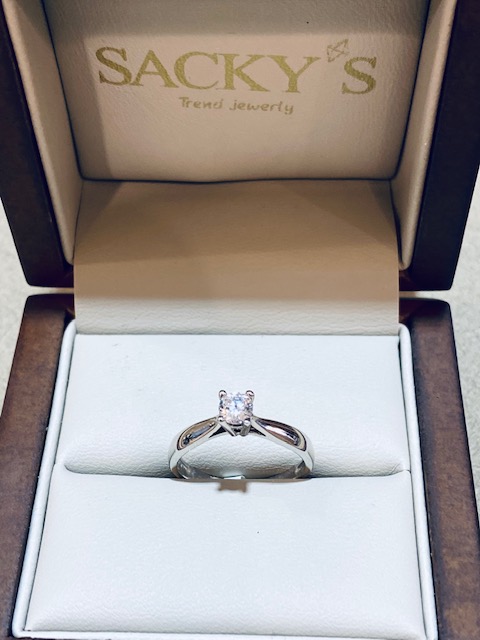ANILLO COMPROMISO SOLITARIO ORO BLANCO 10K, ZIRCONIA TALLA 5 (3MSI TODAS LAS TARJETAS DIRECTO EN TIENDA) Precios sujetos a cambios sin previo aviso por aumento del metal $6,200.00