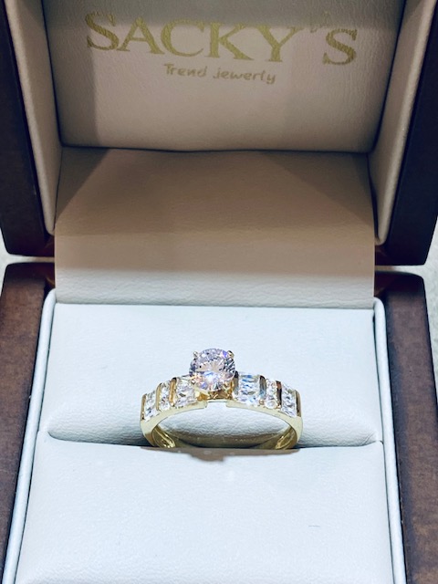 ANILLO COMPROMISO LATERALES ORO AMARILLO 10K, ZIRCONIA TALLA 7 (3MSI TODAS LAS TARJETAS DIRECTO EN TIENDA) Precios sujetos a cambios sin previo aviso por aumento del metal $9,450.00