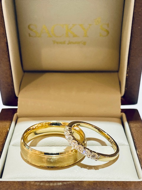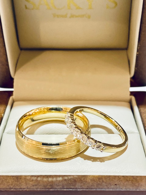 ARGOLLAS MATRIMONIO ORO AMARILLO MATE 10K, 6 Y 3MM, ZIRCONIA (Precios sujetos a cambios sin previo aviso, por aumentos del metal) $17,500.00